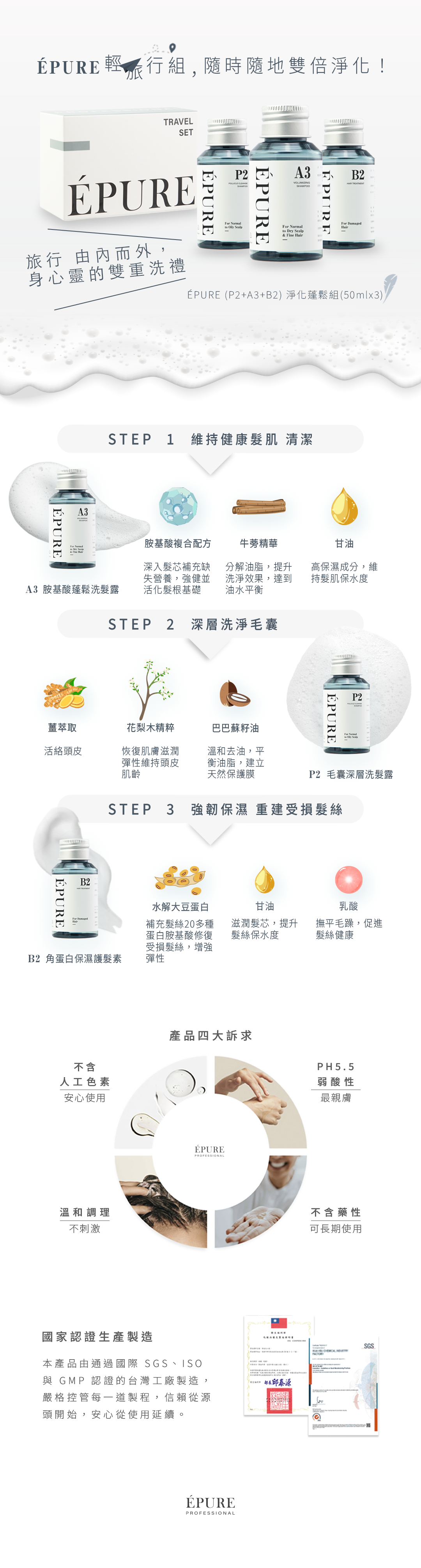 毛囊淨化蓬鬆旅行組 P2+A3+B2 50ml+50ml+50ml